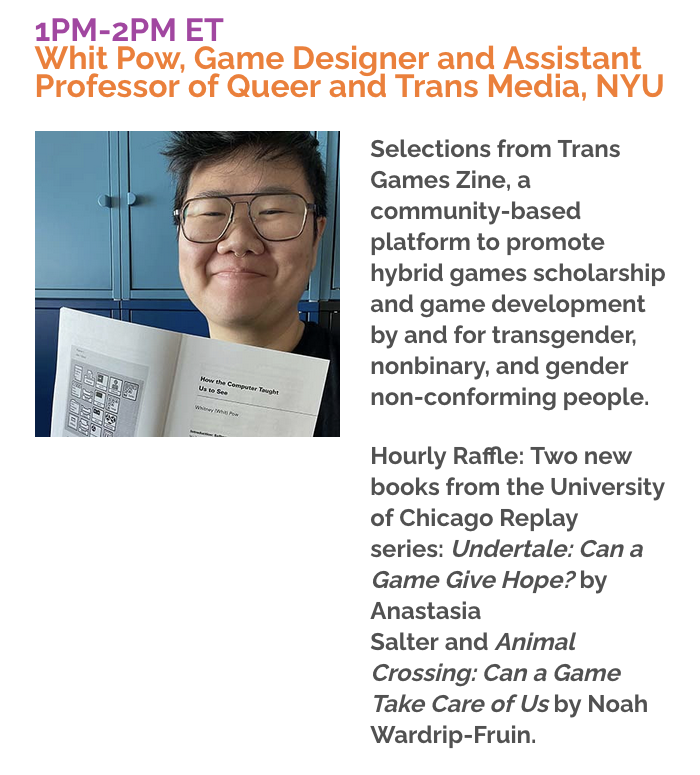 “Trans Games Zine Let’s Play,” invited talk and livestream at the ROMchip: A Journal of Game Histories Fundraising Event Stream. Held online and in New York, NY. February 21, 2026, from 1pm - 2pm ET.